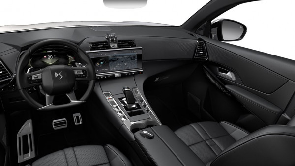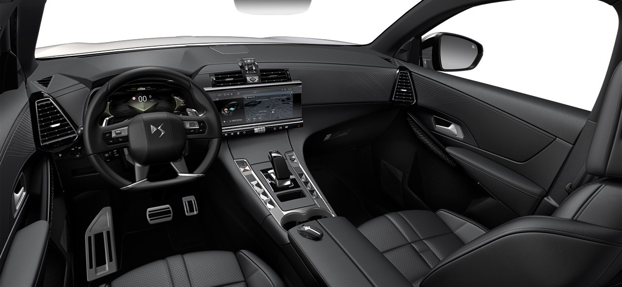 * Пакет DS DRIVE ASSIST (включва адаптивен круиз контрол Stop & Go + позициониране в лентата + следене на мъртвата зона на външните огледала, регулатор и ограничител на скоростта с интелигентно адаптиране на скоростта, контрол вниманието на водача, разширено разпознаване на пътните знаци, активен асистент за поддържане на лентата с предупреждение за напускане на лентата + Автоматично аварийно спиране (с видео камера и радар))